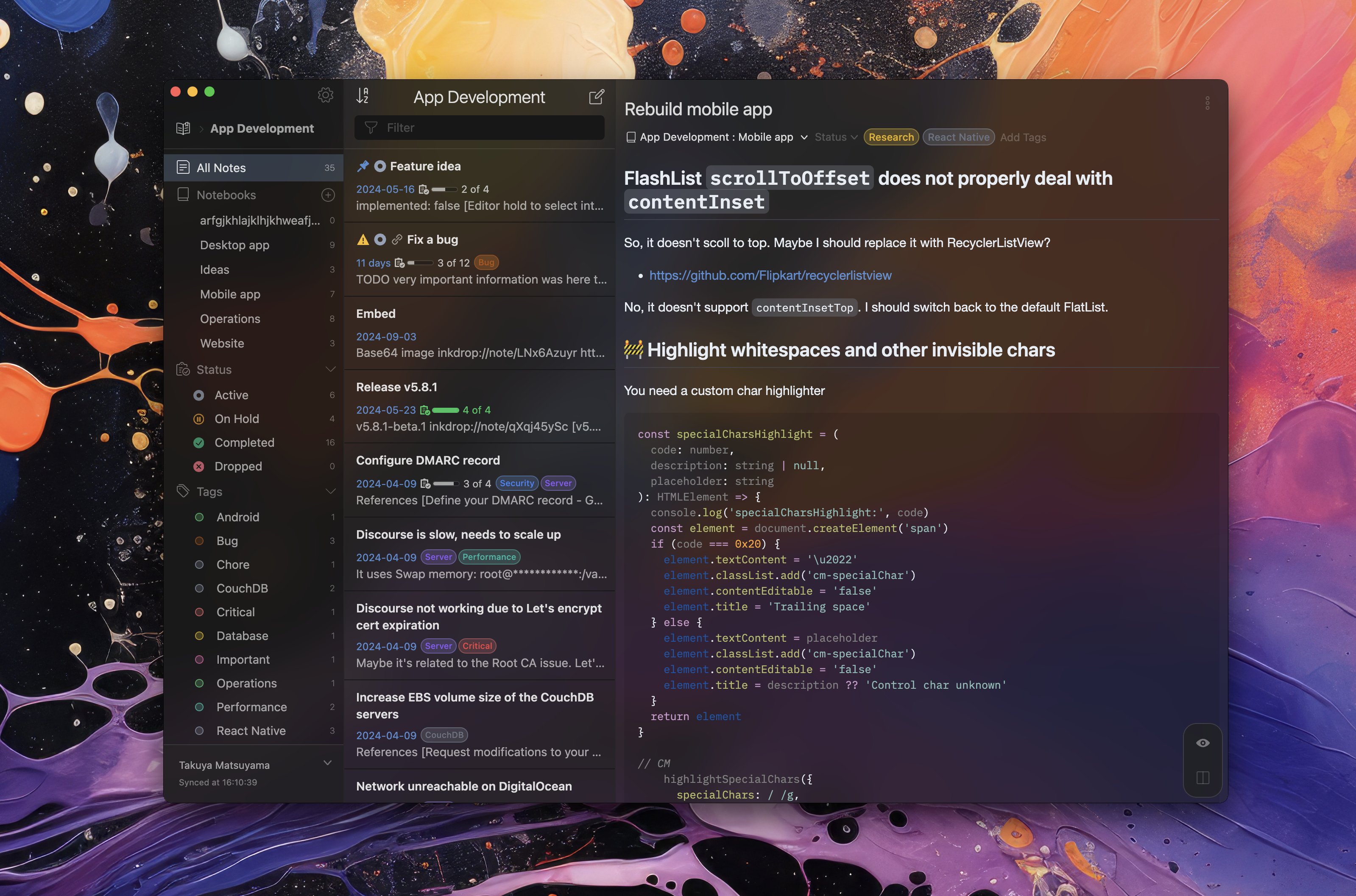 Most of Inkdrop's UI elements can be customized with CSS variables.